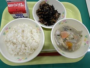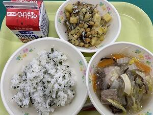 わかめごはん、タイピーエン、大豆と小魚の揚げ煮