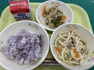 昨日と今日の給食の献立は、西米良中の山﨑りゅうかさんが3月に職場体験の際に考えてくれたものです。子ども達にもとても好評でした。