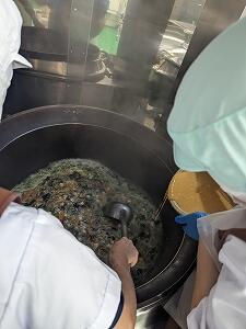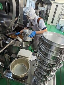 今日は、大きな釜で調理員さんがトマト煮をていねいにていねいに煮詰めてくれました。また、ごぼうサラダに入っているにんじんもごぼうの形にあわせて手切りで千切にしてくれました。ひと手間ひと手間に子どもたちにおいしく食べてほしいという調理員さんの気持ちがこめられています。