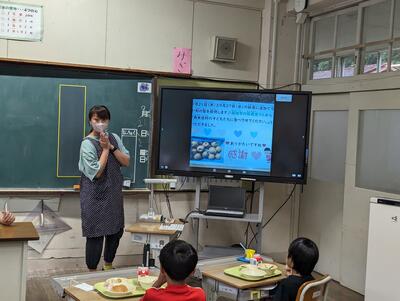 6年生の教室に行くと『Xが見つかりましたー!』と言っていたので、どうしたのー?と聞くと『AからZまでずっと探してて最後まで見つからなかったXが今見つかったんです!』と教えてくれました。楽しそうに美味しく食べてくれて子どもたちの笑顔に元気をもらいました。