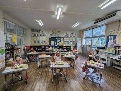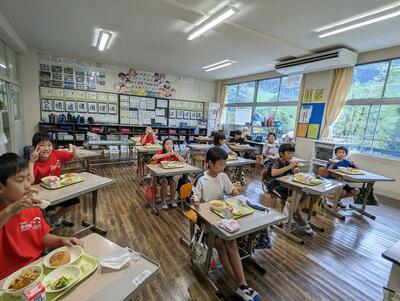 3年生と4年生は、教室に入る人数の関係でそれぞれ食べました。