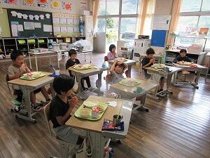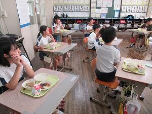 今日、給食の時間に、1年生の教室に行ってみると・・・