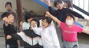 『シチューがおいしかったチュ~』とねずみのポーズで2年生と5年生が伝えていました。
