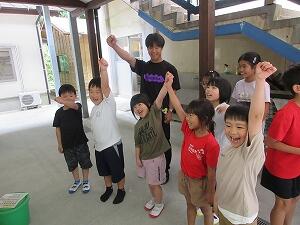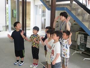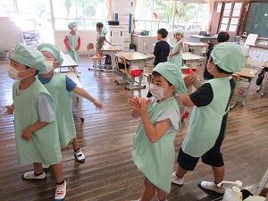 調理員さんが、『しょうが~』と答えると子どもたちは『せいか~い』と言って笑顔で帰っていきました。