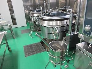 汁物や炒め物は、全て回転釜を使って作っています。西米良村の調理場は、2つあります。