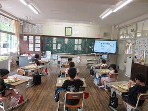 今日から5・6年生が修学旅行に行っています。1、2年生の給食当番のお手伝いにいつも5、6年生が来てくれているので大丈夫かな?と1年生と2年生を見に行きましたが、バッチリでした(^^)/自分たちでしっかり給食当番をかんばっていました。