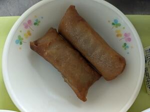 春巻きは、小学校は、50gを1個、中学校は35gを2個提供しました。