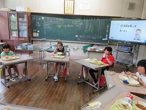 また、今日は3年生がALTの先生と一緒に給食を食べていました。ALTの先生も大好きなスタミナ揚げです。ALTの先生もいつも給食がおいしいと素敵な笑顔で教えてくれます。子どもたちもALTの先生と楽しい時間をすごしていました。