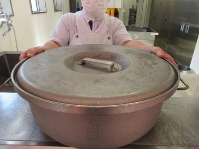 今日は、子どもたちからごはんは何で炊いているのか知りたいです!どれぐらいの大きさか分かるように知りたいです!とリクエストがあったので、子どもたちに紹介しました。
