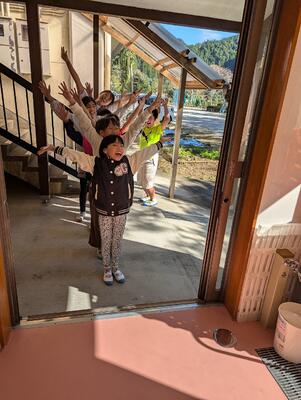 2年生の元気いっぱいポーズと4年生のアッツアツポーズの写真を紹介します。