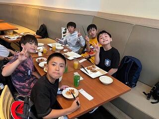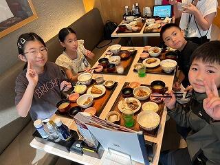 5月31日(金) 修学旅行3日目、いよいよ最終日となりました。子ども達は、みんな元気です。おいしそうに朝食をとっています。今日は、午前中飛行場機体工場を見学し、帰路につきます。