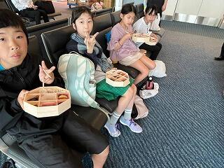 機体工場では、飛行機を見学したり説明があったりしました。大きな飛行機を間近に見ることができ、子ども達は喜んでいました。その後、空港でお弁当を食べたり、お土産を買ったりしています。いよいよ修学旅行も終わりが近づいています。