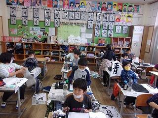 これまでと同様、半紙と真剣に向き一人一人が自慢の「正月」を書くことができました。残すところあと4、5回となった習字の時間。児童達の習字の腕前がめきめきと上達することを願っています。