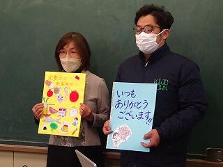 最後に、各学級で作成したメッセージカードを感謝の言葉とともに、給食センターの方々におくりました。