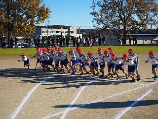 ついに、1本の長い列車になりました。先頭は、4年生のひょうごさんでした。