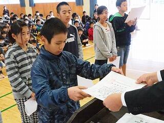 在校生から、6年生に感謝状の贈呈です。そして、それに応えて、6年生からのお礼の言葉です。