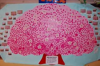3月1日(月)~12日(金)の2週間、学校図書館では、「読書の花を咲かせようイベント」が行われました。写真にあるとおり、一人1冊借りるとシールを1個が貼られます。2週間の間に、2709冊の貸し出しがあり、花は満開となりました。木の横には途中経過も写真入りで掲示されています。2週間でこの貸し出し数はすごいです。