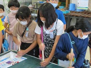 それから、宮崎市の大淀川学習館にも行きました。「チョウの部屋」や「ホタル展示室」、「魚の部屋」、「おいしい虫展」など生き物がいっぱいでした。「ホタルの講座」にも参加して、更にホタルに詳しくなった子どもたちです。