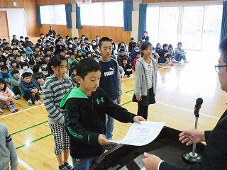 2学期の多くの作品募集に参加し、表彰された子どもたちの紹介がありました。