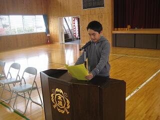 その後、旧5年生(新6年生)の代表(ゆあさん、やまと君)が、最上級生になるに当たっての誓いを述べました。
