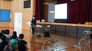 第5、6学年児童が講堂に集合して、高鍋保健所の方のお話を聞きました。