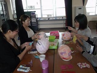 家庭教育学級で、「ランプシェード」作りが行われました。