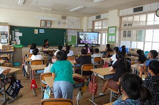 音読指導では、はじめにアナウンサーの方が実際に行っている早口言葉の練習をしました。その次に、国語の教科書に載っている「せんねん まんねん」という詩を口調を変えていろいろなパターンで朗読してくださいました。子ども達は、読み方によって、詩の伝わり方が変わってくることを実感していました。