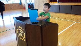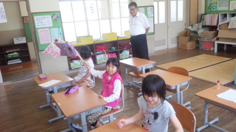 校長先生も一緒に、手作りのこいのぼりを振って、元気に歌いました。 担任の中武先生に手伝ってもらい、きらきらぼしをハンドベルで演奏しました。