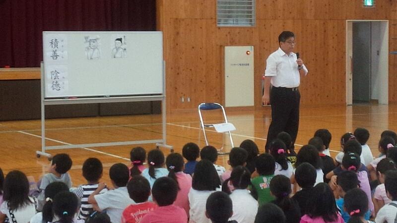 最初に、校長先生から、「積善」「陰徳」「一日一善」という、中国の明の時代の話がありました。