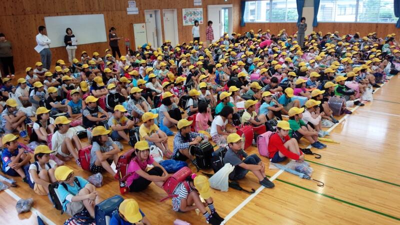 全校児童が、5校時に講堂に集合して、集団下校をしました。