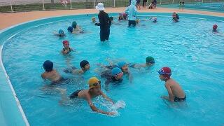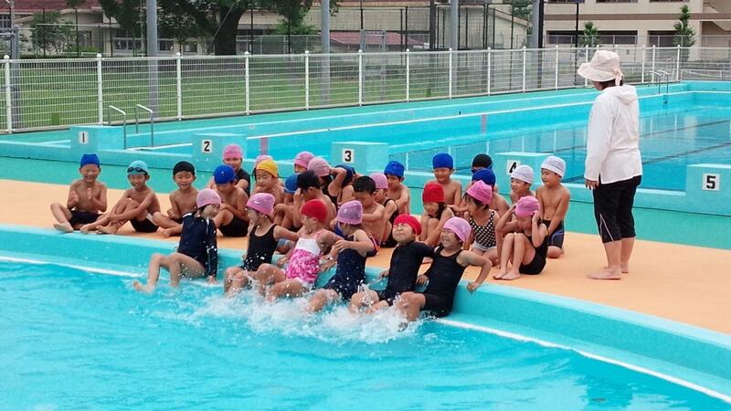 今日は、久しぶりの曇り空。1年生が水泳をしました。