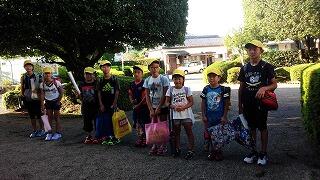 児童代表(大橋君)の心強いあいさつがありました。 出発前最後の担任(平井先生)の注意。ちょっぴり心配そうです。