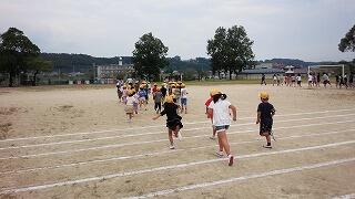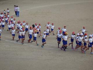 自分のペースを守って走ります。 はじめから全力で走る児童もいます。
