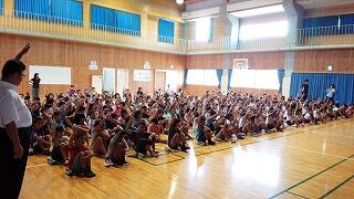 第5、6学年児童が講堂に集合して、高鍋保健所の方のお話を聞きました。