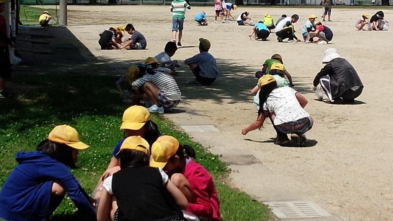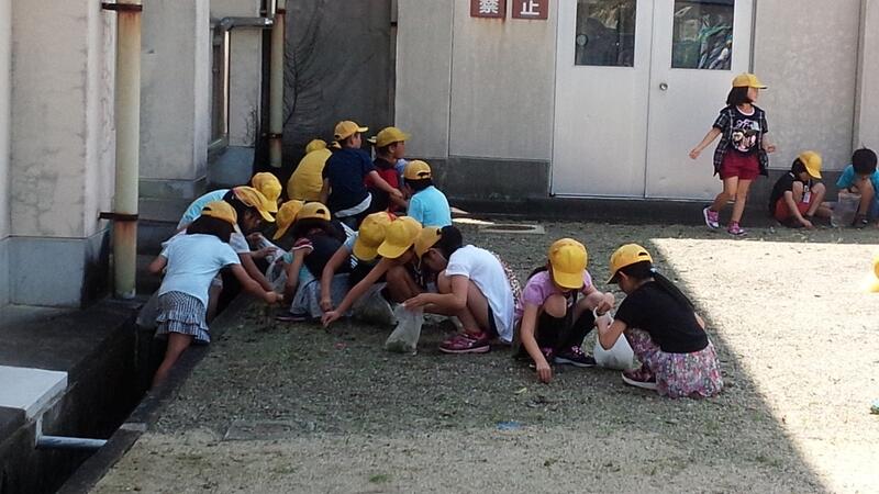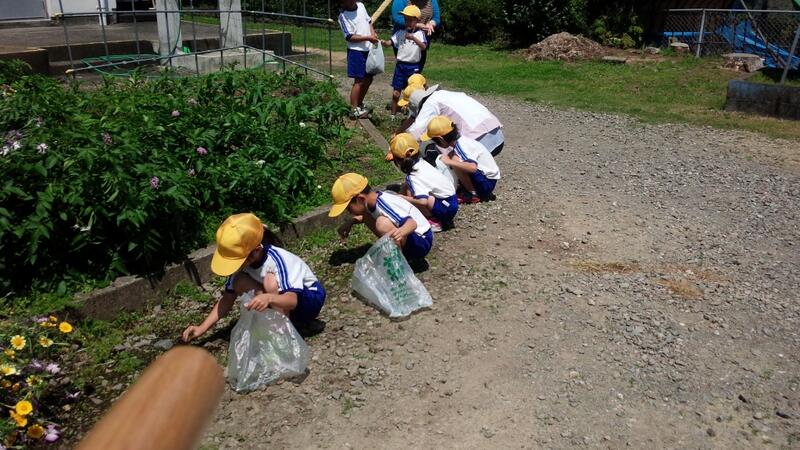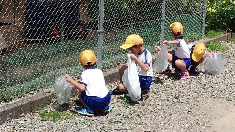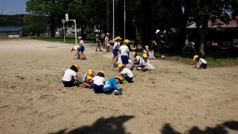 全校児童と教師が、一人一人袋を持ち、それが一杯になるまで、全員で汗を流し、活動しました。