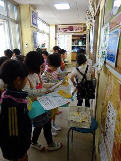 5月8日(水) 今日は2・3時間目に1・2年生合同で学校探検をしました。1年生は学校の教室や色々な場所を覚えたり、廊下や階段の歩き方を学びました。2年生がリーダーとなり、1年生と一緒に探検をして学校の案内等、お兄ちゃんお姉ちゃんらしいたのもしい態度でした。1年生は探検してシールをもらったり、スタンプを押してもらったりと嬉しそうな様子が見られました。学校の色々な場所を早く覚えて学校生活がもっと楽しく出来ると良いですね。