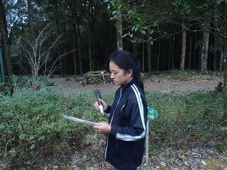 はじめのつどい(入所式)です。 追跡ハイキングの森「うぅ、怖い」