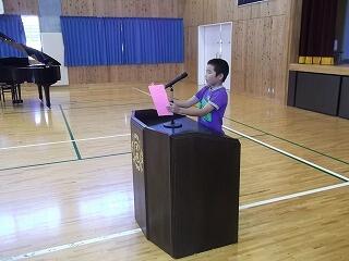 友達の作文発表は、4年生の「かつみ君」と「ななさん」でした。1学期の反省と2学期の目標を発表しました。