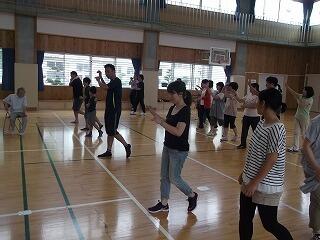 講師は、今年も木城町在住の高森 香奈絵 先生でした。 先生のレクチャーの後、まずは、足先の動きから始まりました。