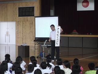 今回は、校長先生が言葉によって学習への興味が高まることをクイズを交えてお話されました。