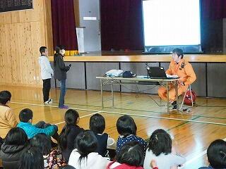 4学年を中心に活動を行っており、本日、避難訓練の指導のためにお越しいただいた隊員の皆様に、