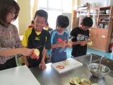 コンテスト第4弾です。10月26日(金)りんごの皮むきコンテストが行われました。ジェフ先生も参加しています。果たして結果は・・・・・。