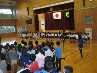 最後に、全校児童で、木城小の校歌を歌いました。