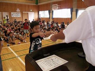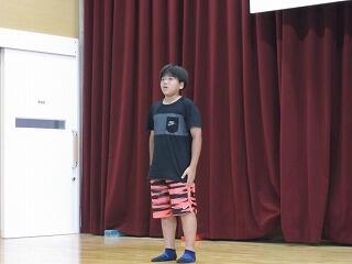 次に、児童代表の作文を4年生のかいと君、れいらさんが読みました。1学期の学習を振り返り、楽しみな夏休み、