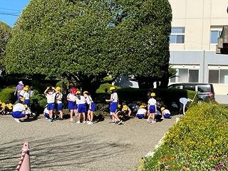 20日火曜の朝の時間に小・中学生みんなでその後片付けをしました。