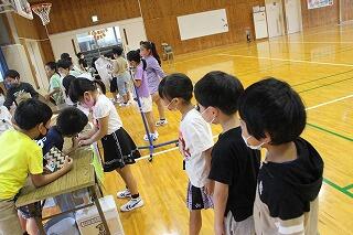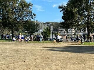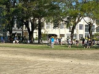 3年生はベースボール型ゲームの学習で、「キックベース」に取り組んでいます。攻撃でのキックの強さや方向を考えたり、守備での位置やボールの取り方を考えたりして、全員が一生懸命に取り組んでいます。