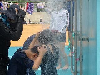 6月7日に2年生がプール開きを行いました。しっかりと準備運動を行い、冷たいシャワーに歓声をあげて、ゆっくりと水の中へ入っていきました。この日は少し水が冷たかったようですが、みんなとても楽しく活動することができました。