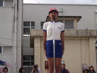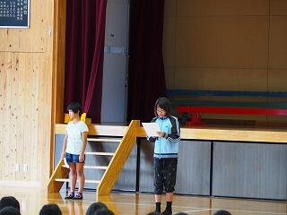1年生の代表4名による「誓いの言葉」を元気よく、6年生の「代表の言葉」をしっかり発表しました。
