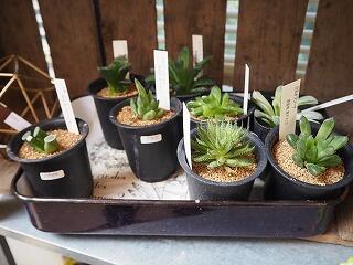 材料の多肉植物の種類は豊富です。迷っちゃいます。