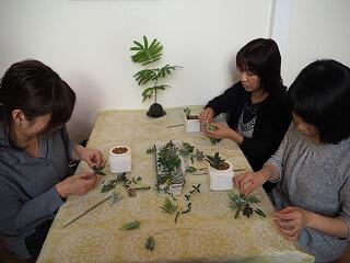 次に、多肉屋という植物店に移動し、寄せ植え体験を行いました。